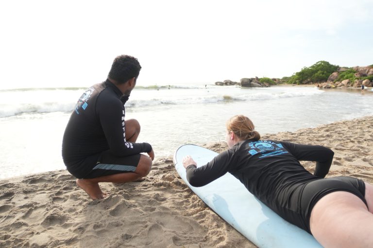 Our camp will start the beginner surfer on their surfing journey, assist the intermediate surfer to perfect their skills on the board and guide the advanced surfer. At Arugam Bay Surf Center we strive to do our best to provide you with the best possible chance to grow as a surfer, this way surf groups will be divided per level surfing experience. Arugam Bay Surf Center has accommodation for all types of surfers from the solo traveller, small and large groups and families. Discover what a day in Arugam Bay Surf Center looks like.